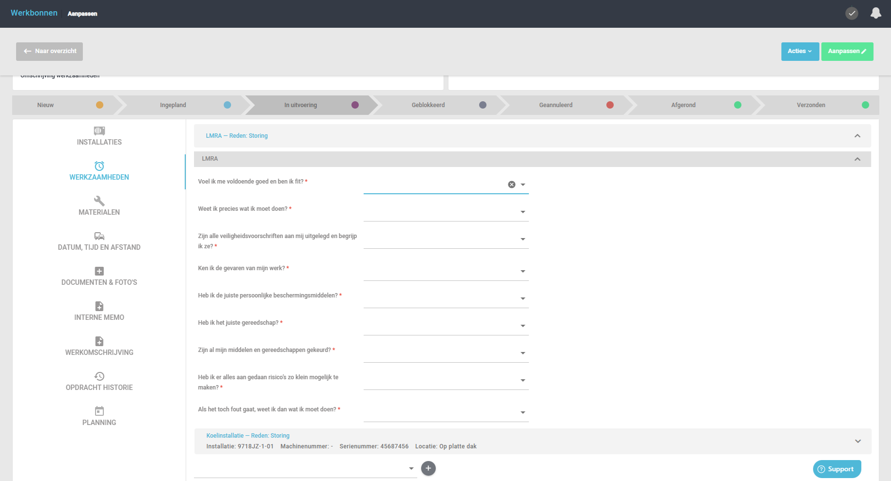 - Werkregistratienummer (evt. werkbon nummer)